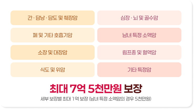 ¡°±âŸÇǺξϡ±, ¡±°©»ó¼±¾Ï¡±, ¡±Á¦ÀÚ¸®¾Ï¡±, ¡±°æ°è¼ºÁ¾¾ç¡±, ¡±´ëÀåÁ¡¸·³»¾Ï¡±À¸·Î Áø´ÜÈ®Á¤µÈ °æ¿ì * ´Ù¸¸, ÃÖÃÊ 1ȸÀÇ Áø´Ü È®Á¤¿¡ ÇÑÇÏ¿© Áö±ÞÇÔ - ½ÅÀϹݾÏÀÇ 10% |